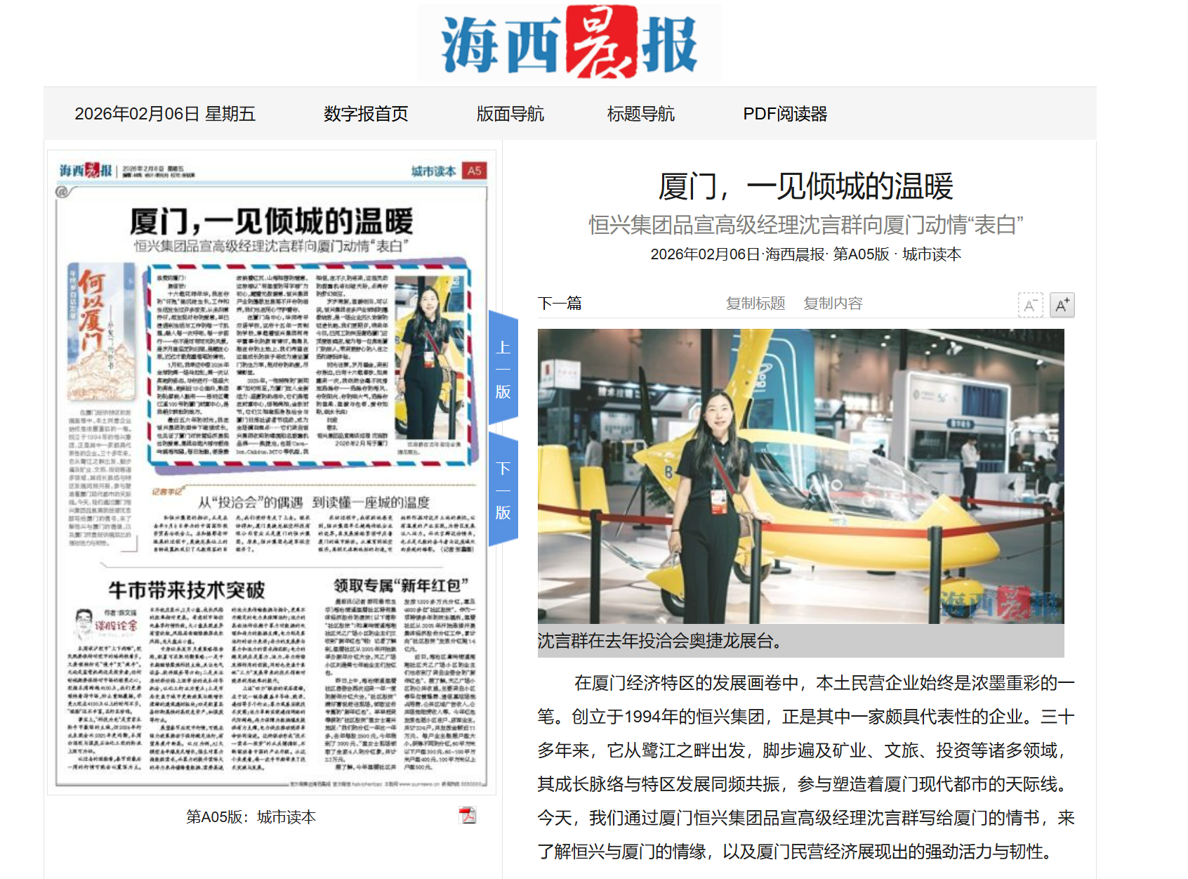 【人民政協(xié)報】2025年12月12日,人民政協(xié)報專訪柯希平文章《踩在時代的“鼓點”上》,刊登于第4版“委員風采”欄目,照寧記者手記《致敬民營企業(yè)家,致敬奮斗者》同步刊登??孪F剑旱谑?、十三、十四屆全國政協(xié)委員,廈門市工商聯(lián)主席,廈門恒興集團有限公司董事長。2025年11月27日,柯希平作為董事長帶領低空經(jīng)濟知名品牌奧捷龍,參加2025亞洲通用航空展;12月3日,他以第二大股東身份,出席廈門奧普拓自控科技有限公司股東董事交流會;12月5日,他以投資人身份,出席“國產GPU第一股”摩爾線程的上市敲鐘儀式……在新質生產力賽道加速布局并收獲頗豐的柯希平,在接受記者采訪時樸實地說:“作為農民的兒子,創(chuàng)業(yè)30多年來,我走對的每一步,都是因為緊跟了國家經(jīng)濟命脈的跳動?!睆募缣艮r產品“趕集”,到如今的商業(yè)版圖涵蓋冶金礦產、商業(yè)貿易、民辦教育、文化旅游、資產管理、股權投資等多個領域,柯希平的經(jīng)歷正是改革開