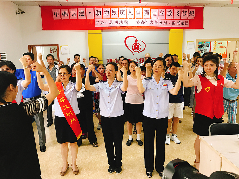 5月22日上午9:30,由思明地稅主辦,火炬分局和恒興集團(tuán)協(xié)辦的“巾幗黨建·助力殘疾人自強(qiáng)自立放飛夢(mèng)想”的愛(ài)心慰問(wèn)活動(dòng)在思明區(qū)開(kāi)元街道殘疾人職業(yè)援助中心開(kāi)展。