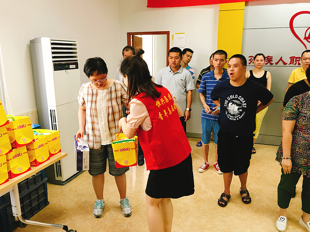 活動(dòng)現(xiàn)場(chǎng),恒興集團(tuán)青年志愿者與主辦方一起為援助中心的學(xué)員們送上生活用品(蘇打餅、威化餅和牛奶),親切握手并致以問(wèn)候。