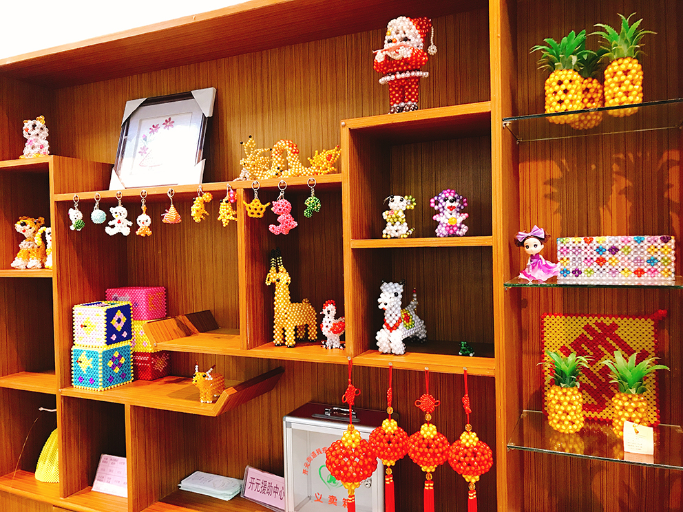 援助中心的櫥柜里,擺滿了學(xué)員們的作品,可愛(ài)的小雞、機(jī)靈的小狗、靈巧的鑰匙圈…每一個(gè)都充盈著學(xué)員們的用心、耐心和愛(ài)心。恒興集團(tuán)志愿者們紛紛掏錢(qián)購(gòu)買(mǎi)這些手工藝品,希望能夠以綿薄之力鼓勵(lì)他們堅(jiān)持學(xué)習(xí),努力創(chuàng)造,實(shí)現(xiàn)美好的心愿。