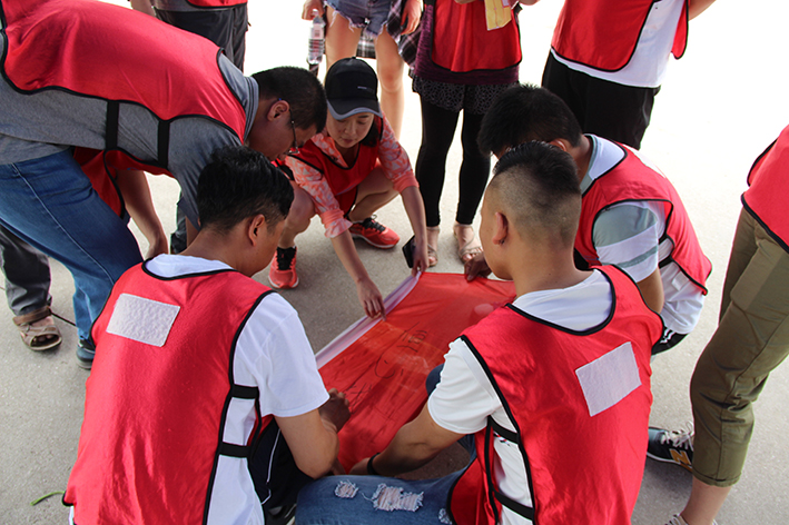 緊接著是“扎筏泅渡”的活動,各隊(duì)人員面對簡易的渡船設(shè)施——油桶、竹竿、繩子,大家透過群策群力、合理分工、凝心聚力迅速造了一艘船,而又安全地護(hù)送全部隊(duì)員抵達(dá)彼岸。讓大家更深刻地體會組織、溝通、協(xié)作在工作中的重要性,也增進(jìn)大家的情感交流。