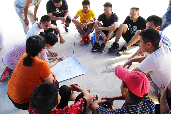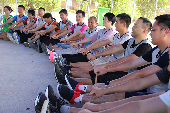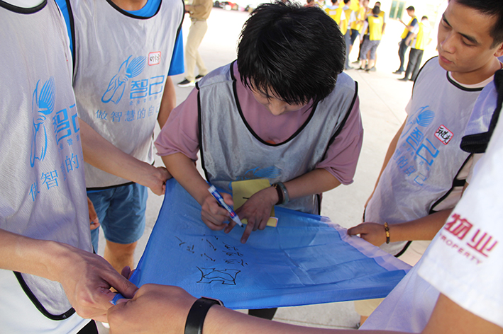 隨后,按照教練的指揮大家進(jìn)入“團(tuán)隊(duì)組建”分成了四個(gè)小隊(duì),“恒心隊(duì)”、“戰(zhàn)狼隊(duì)”、“飛虎隊(duì)”、“好漢隊(duì)”……每個(gè)隊(duì)通過取隊(duì)名、想口號、選隊(duì)歌、擺造型來各自進(jìn)行展示,拼士氣、展風(fēng)采,這是促進(jìn)員工間溝通交流,增加彼此了解的熱身活動。緊接著充滿挑戰(zhàn)性的拓展活動開始了,各隊(duì)開始根據(jù)教練發(fā)放的任務(wù)展開激烈的比拼,“神筆馬良”所有隊(duì)員各自拉著一根綁著大毛筆的繩子末端,在不接觸毛筆的情況下完成各自隊(duì)名的書寫,培養(yǎng)團(tuán)隊(duì)協(xié)作能力。