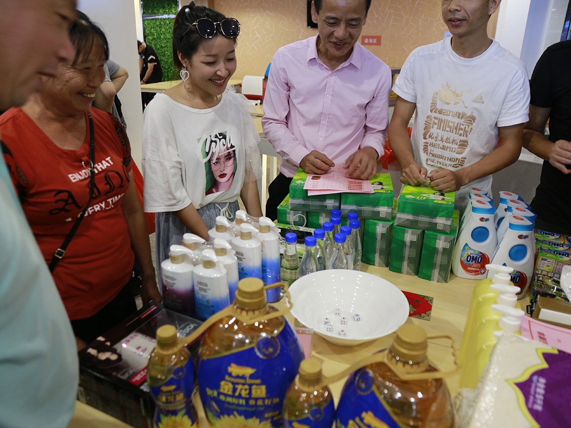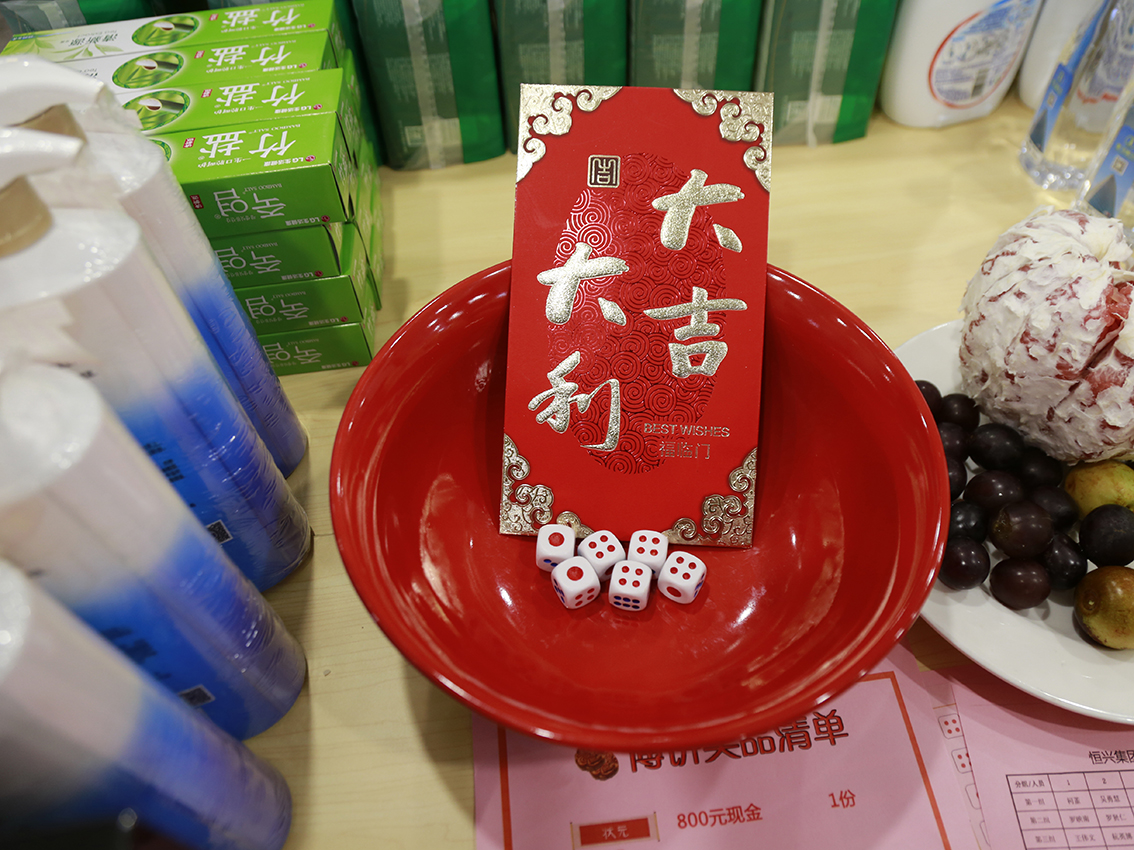 隨著王總裁的一聲“開博啦!”,恒興集團(tuán)2018中秋博餅聯(lián)歡會(huì)正式拉開序幕。大家熱情高漲投入博餅環(huán)節(jié),現(xiàn)場叮叮當(dāng)當(dāng)?shù)镊蛔勇淙牒M氲牟╋灺暫痛蠹业暮炔事暣似鸨朔?,每個(gè)人都在沖擊狀元大獎(jiǎng),期待博得好運(yùn)!隨著博餅活動(dòng)的進(jìn)行,原先堆在桌上的獎(jiǎng)品一一被收入囊中,大家拎著“戰(zhàn)利品”,喜笑顏開。
