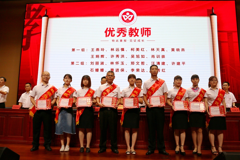 大會隆重表彰了2019—2020學年度“三十佳教師”、“優(yōu)秀教師”、“優(yōu)秀班主任”、“優(yōu)秀員工”、“優(yōu)秀共產黨員”,頒發(fā)“高考獎金、中考獎金”及“高考文科安溪第一名”特別獎。