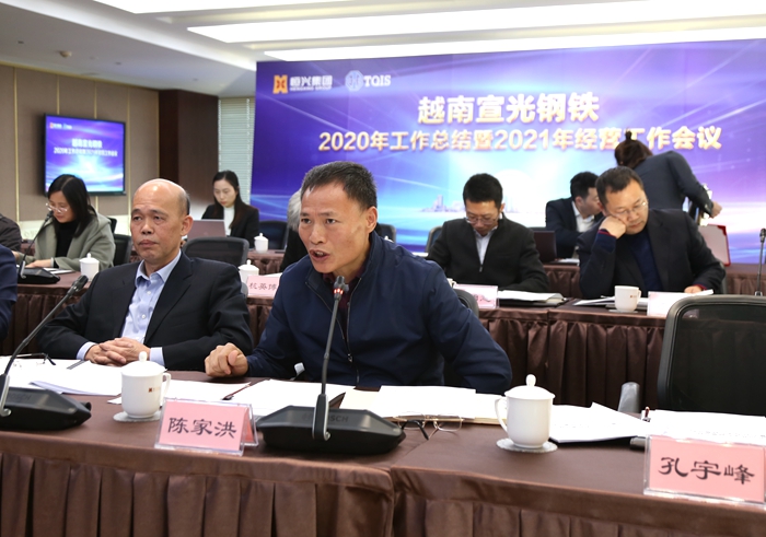 根據(jù)年會(huì)議程安排,越南宣鋼公司向集團(tuán)公司匯報(bào)了年度財(cái)務(wù)工作、人力工作情況,在今年疫情的嚴(yán)峻環(huán)境中,宣鋼公司解決了宣光當(dāng)?shù)亟?000人就業(yè),解決了近1000戶家庭的生活問(wèn)題,為當(dāng)?shù)貏?chuàng)造了稅收,得到了宣光政府的肯定。