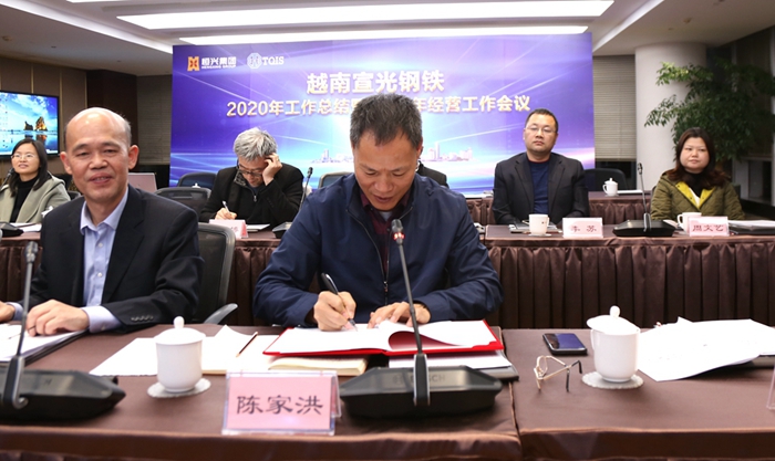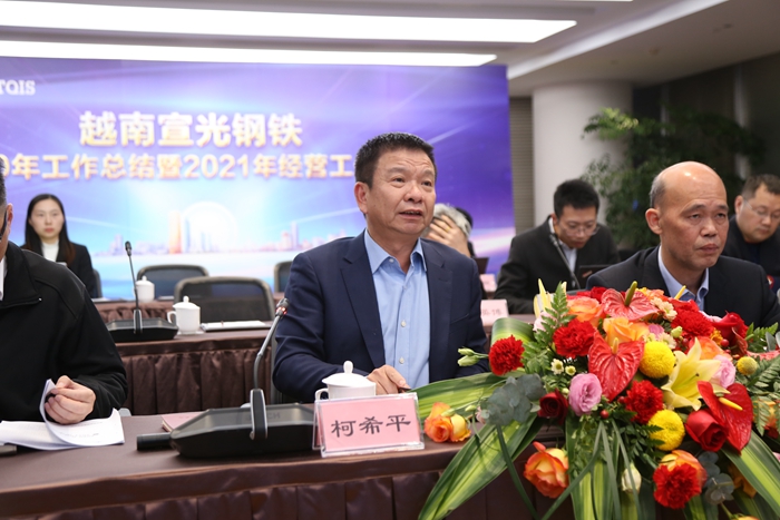 集團(tuán)董事長(zhǎng)柯希平、副董事長(zhǎng)羅映南、董事副總裁陳家洪、董事副總裁王偉文等集團(tuán)董事會(huì)成員,及相關(guān)職能部門負(fù)責(zé)人,與遠(yuǎn)在越南的宣鋼管理團(tuán)隊(duì)共同出席了本次工作會(huì)議??孪F蕉麻L(zhǎng)在總結(jié)發(fā)言時(shí),肯定了宣鋼2020年在疫情之下所取得的成績(jī),并向宣鋼公司全體同仁表示感謝。