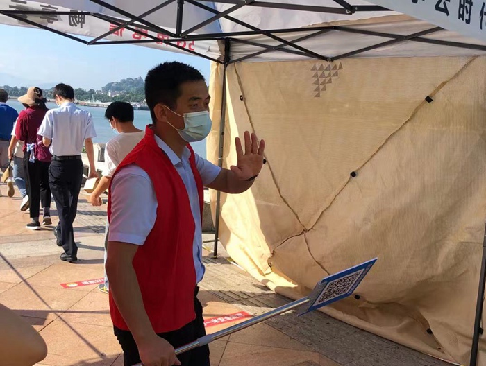 疫情當(dāng)前,真的很希望自己能做點什么,正好看到集團招募志愿者,就參加了。我做志愿者的那天是9月15日下午,在那做核酸引導(dǎo)員,那會兒因為下了一場雨,已經(jīng)算很涼快。我自己去海濱公園點進行采樣時,看到很多醫(yī)護人員特別辛苦,天氣熱太陽曬,他們都是汗流浹背的,很心疼。所以我知道那些工作人員比我支援的幾個小時辛苦多了。
