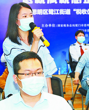“拋磚引玉”的解讀之后,活動進入重頭戲——互動問答環(huán)節(jié)。除了現(xiàn)場宣講的三位宣講骨干外,來自思明區(qū)稅務(wù)局不同領(lǐng)域的業(yè)務(wù)骨干也來助陣,現(xiàn)場逐一解答企業(yè)問題。
